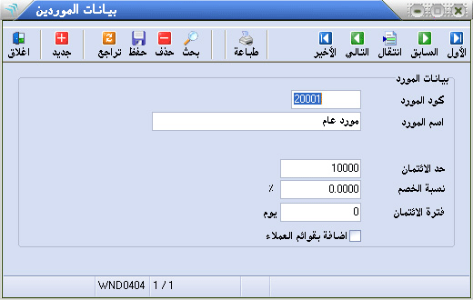 من هذه الشاشة يمكنك ادخال بيانات الموردين الذين تتعامل معهم و تحتفظ بسجلات حسابية لهم